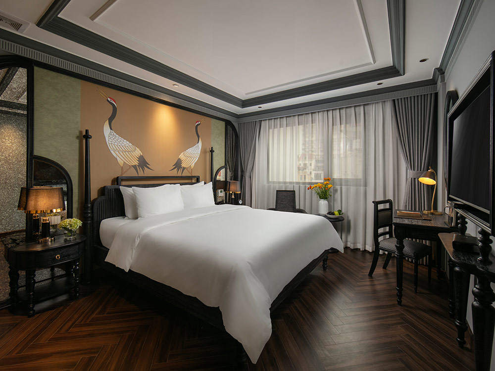 The Executive Suite Room offers a spacious and elegant retreat, featuring a separate living area and refined contemporary design. Large windows bring in natural light and offer charming city views, while premium amenities such as a plush bed, flat-screen TV, minibar, and a luxurious bathroom ensure maximum comfort—perfect for guests seeking a more upscale and relaxing stay in the heart of Hanoi.